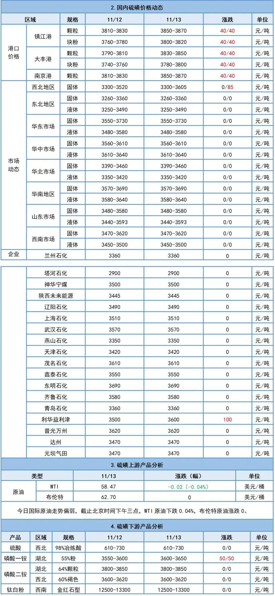 11月13日硫磺日評:國產硫磺價格局部上行,港口硫磺價格再度上漲