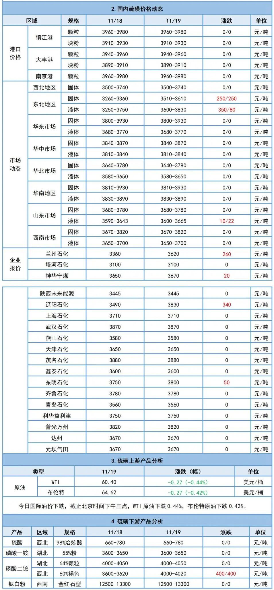 11月19日硫磺日評:國產硫磺價格穩中有漲,港口硫磺價格高位盤整