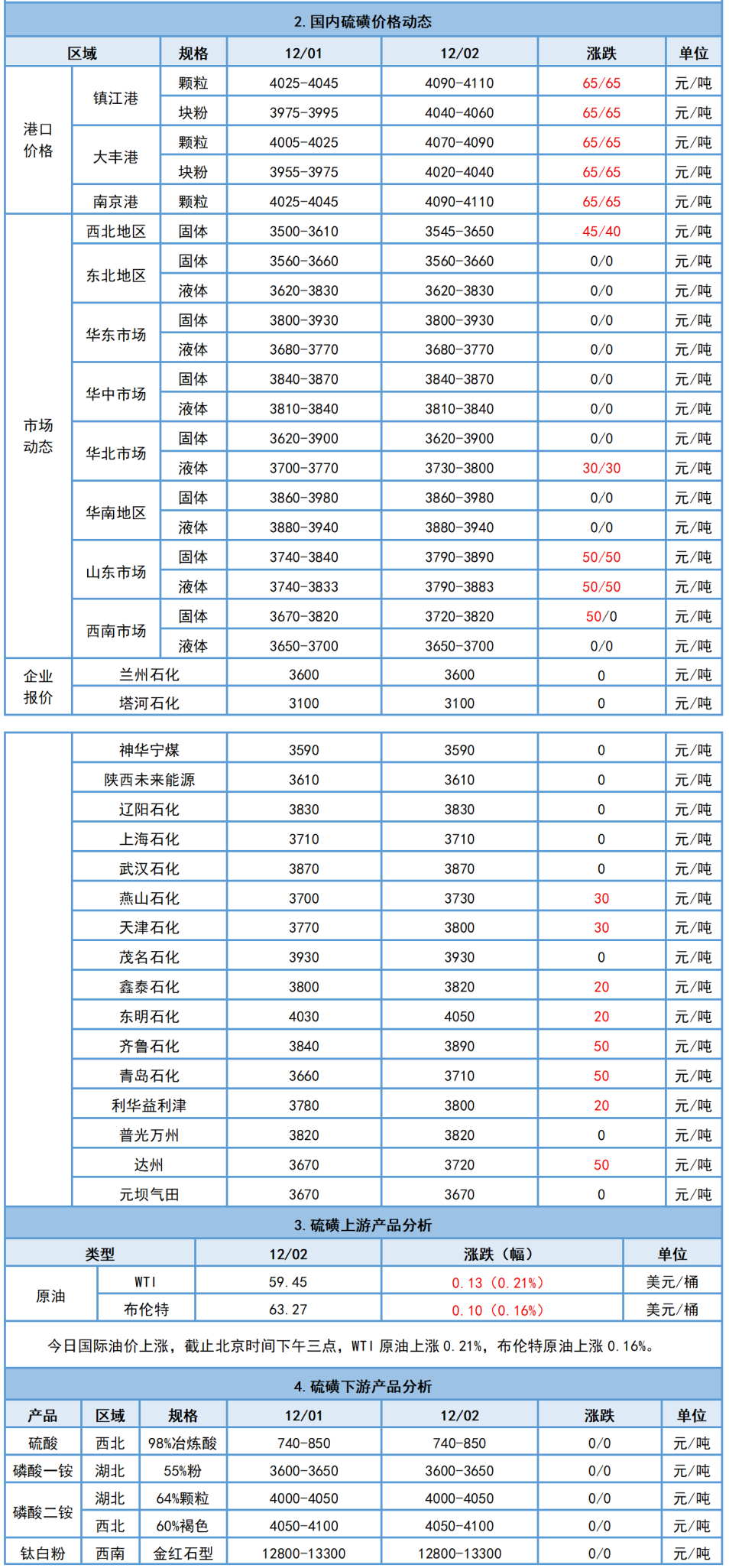 12月2日硫磺日評:國產硫磺價格穩中上行,港口硫磺價格繼續上漲