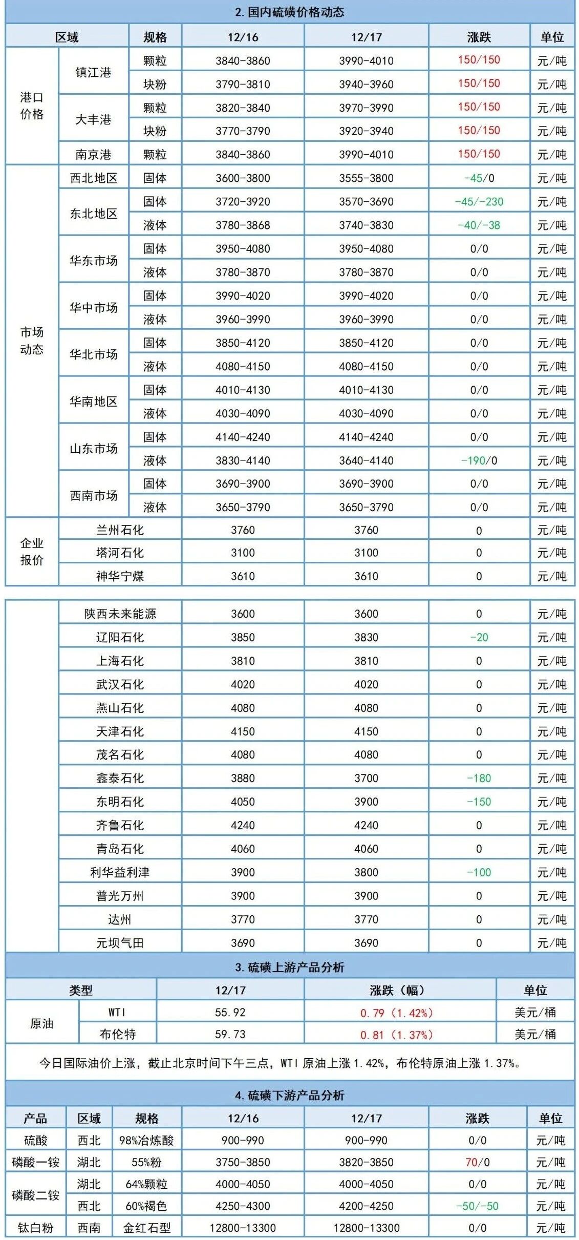 12月17日硫磺日評:國產硫磺價格局部下行,港口硫磺價格漲勢明顯