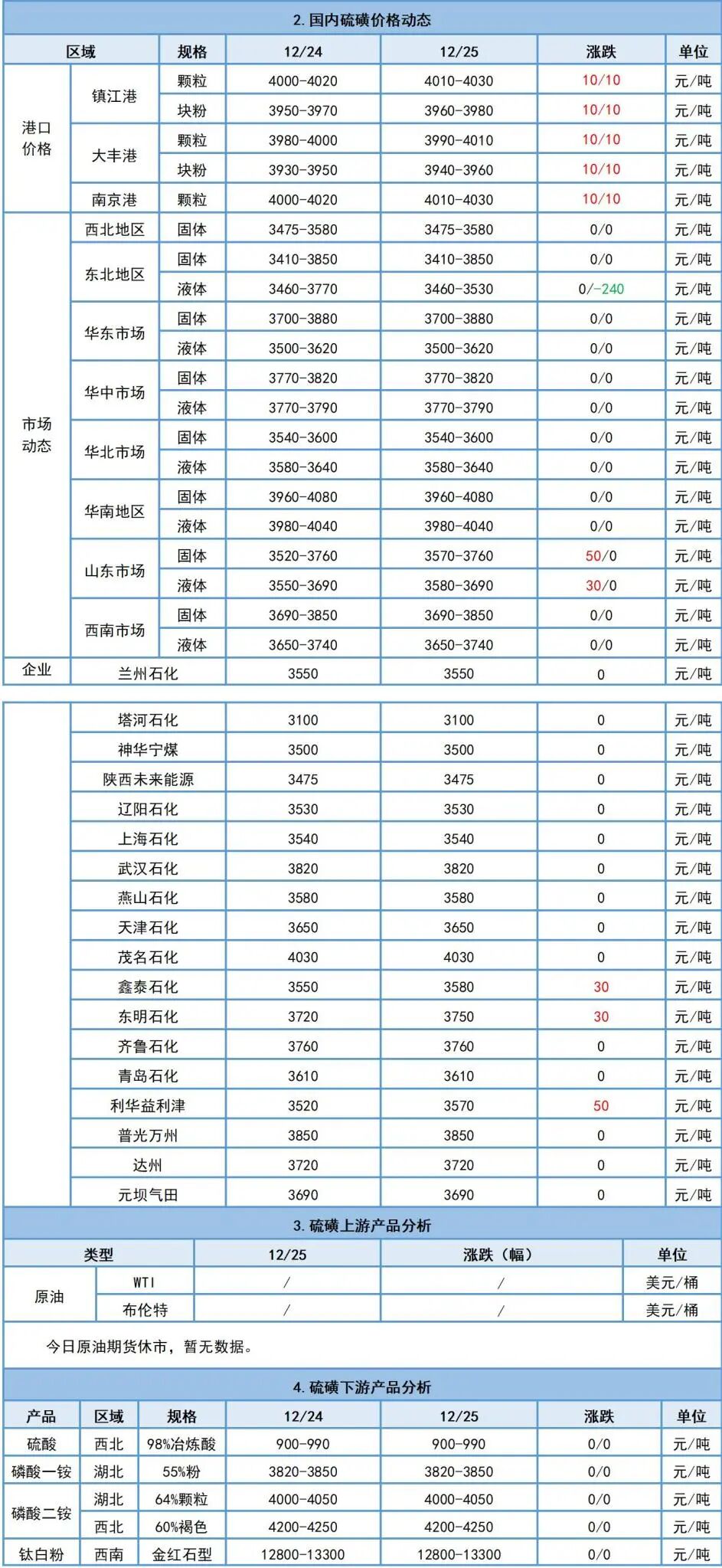 12月25日硫磺日評:國產硫磺價格穩中有漲跌,港口硫磺價格繼續上漲