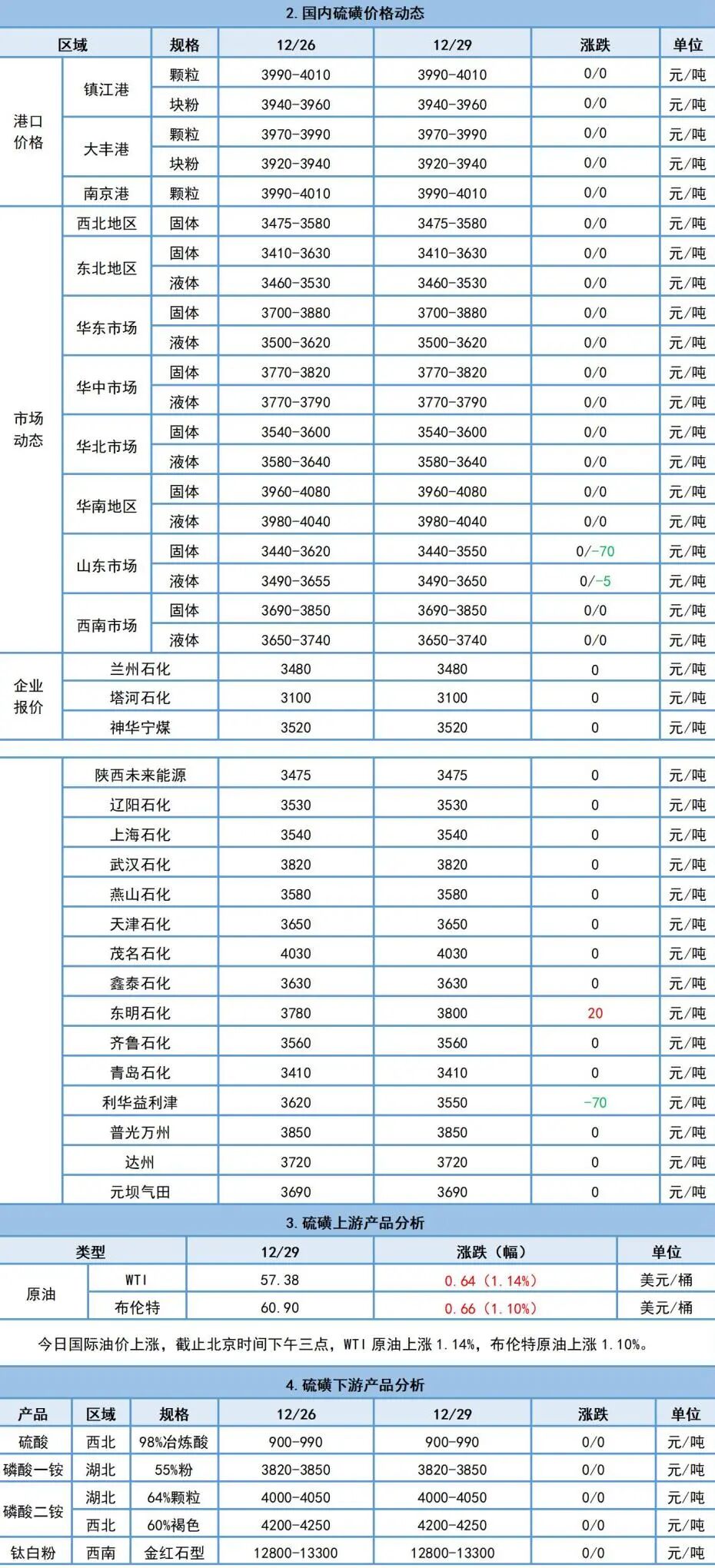 12月29日硫磺日評:國內硫磺價格持穩為主,局部漲跌