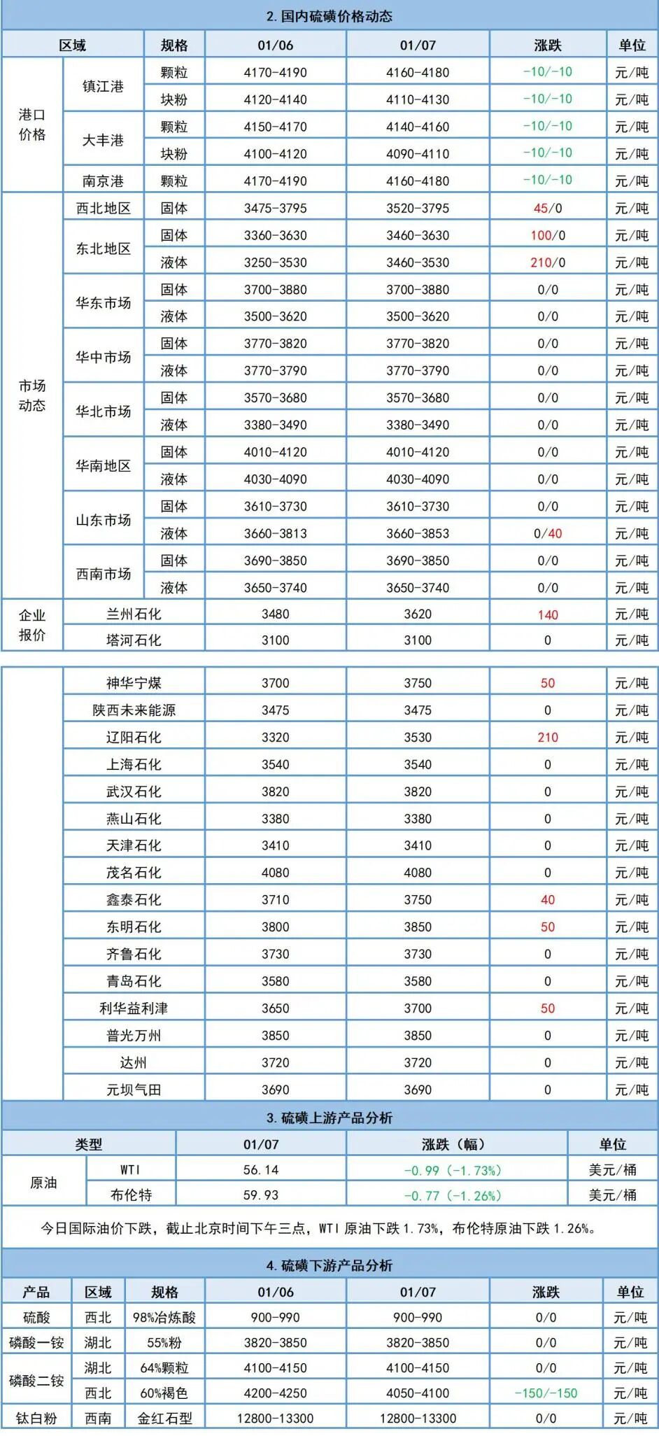 1月7日硫磺日評:國產硫磺價格穩中上行,港口硫磺價格小幅下跌