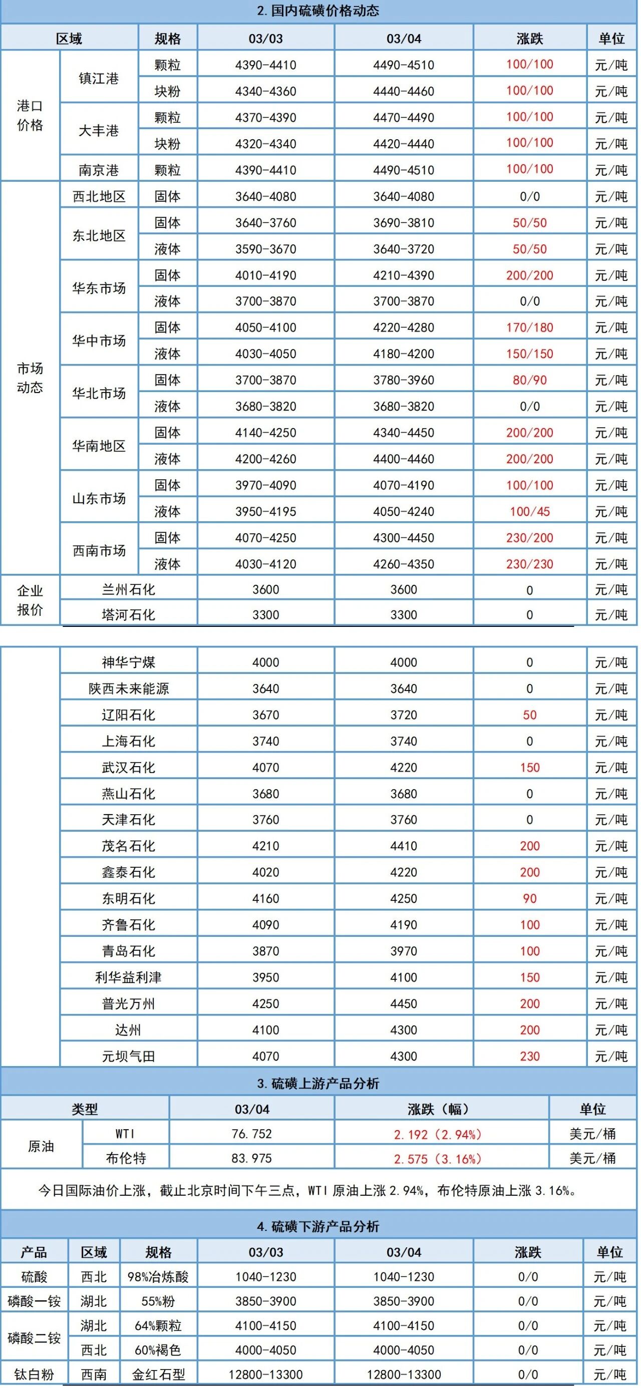 3月4日硫磺日評:國產硫磺價格大勢上漲,港口硫磺價格再創新高