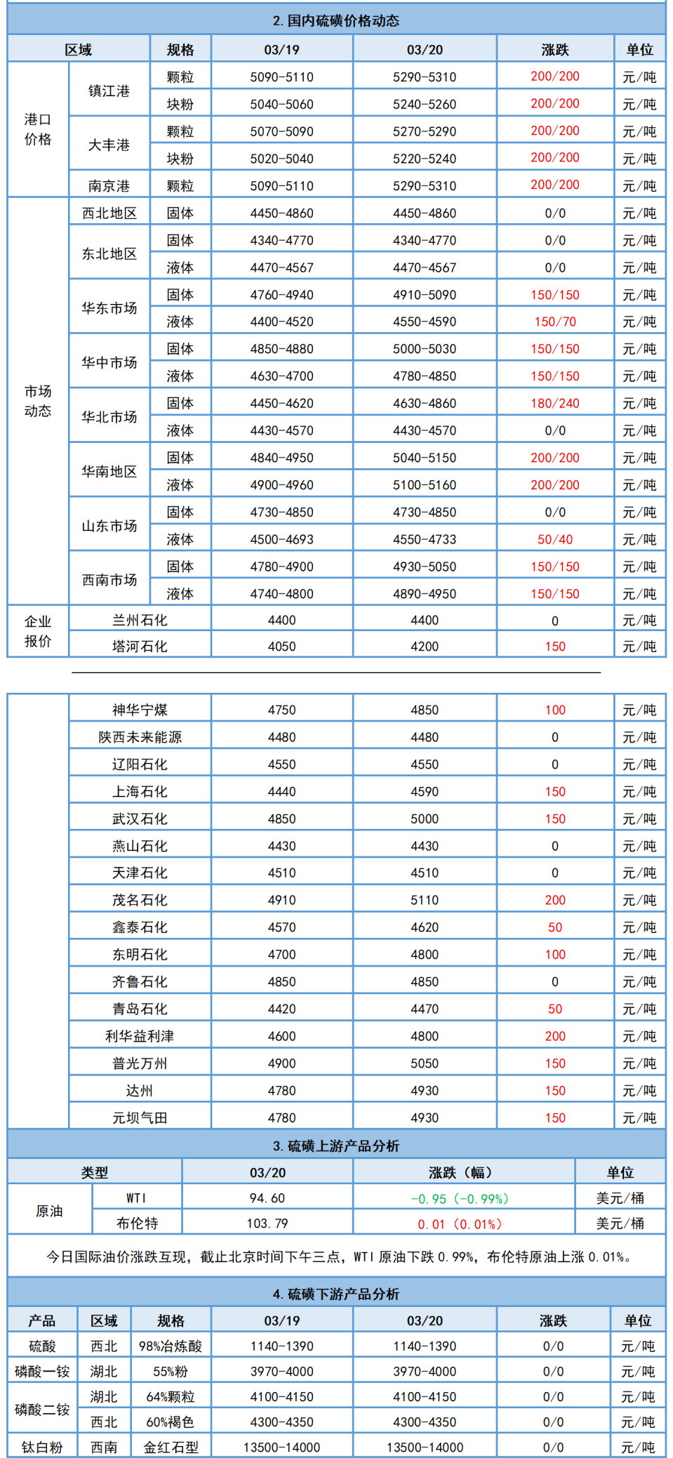 2026年3月20日硫磺日評:外圍局勢擾動,硫磺繼續大漲