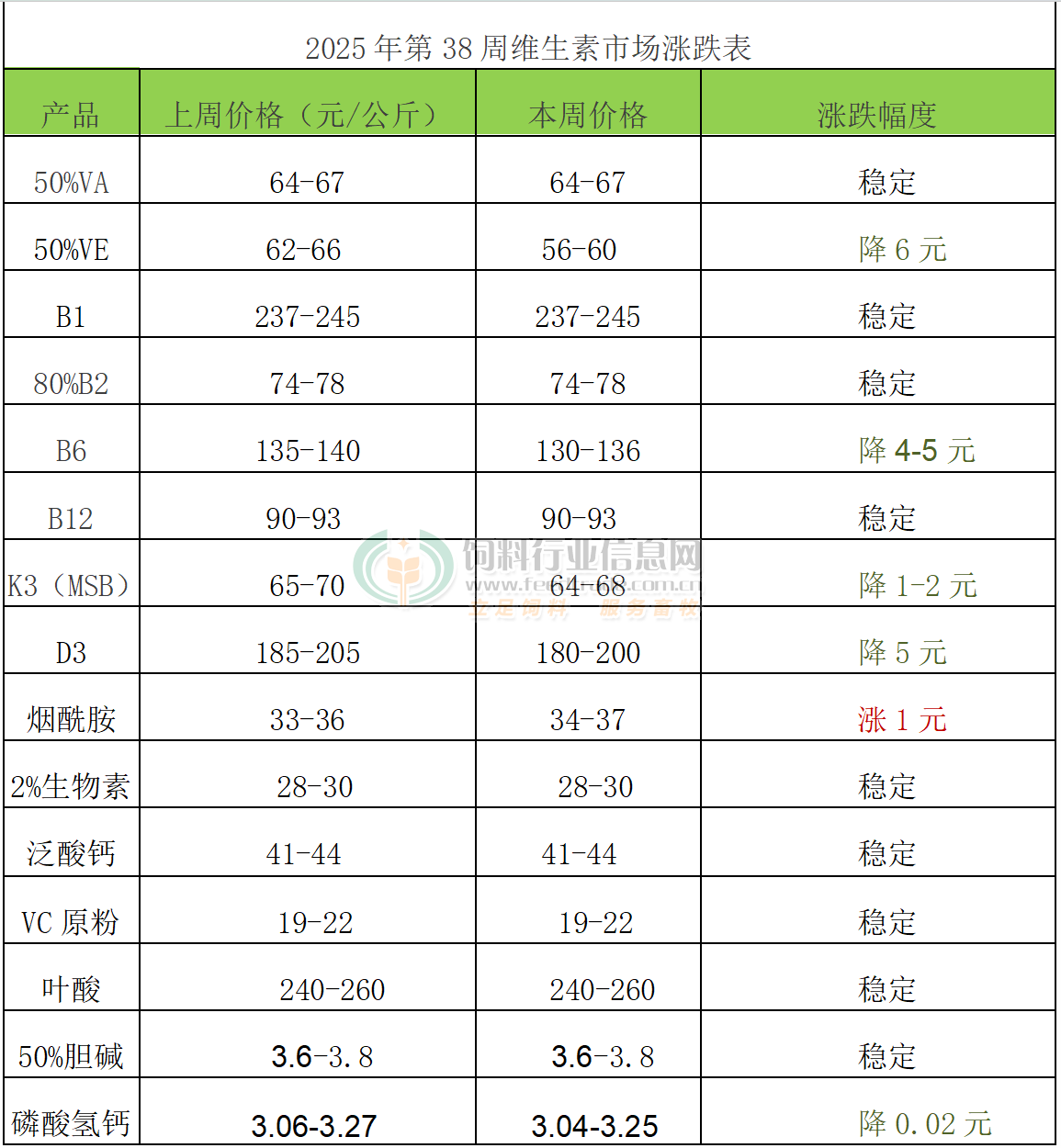 VE:本周VE市場報價56-60元/公斤。歐洲VE市場報價7.5-8歐元/公斤。山東新和成VE生產線計劃于6月上旬開始檢修10-12周。浙江醫藥昌海生物分公司VE生產線計劃自6月初檢修至9月初。帝斯曼VE生產線計劃從7月中旬起按計劃停產檢修6周。北沙制藥計劃7月開始停產檢修10-11周。7月16日市場稱國內廠家簽單價格小漲,市場購銷好轉。8月7日BASF宣稱VE產品解除不可抗力狀態。9月8日市場稱帝斯曼VE粉停報.