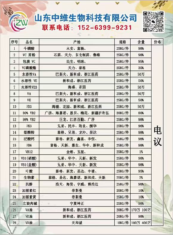 2026年04月28日山東中維生物科技有限公司添加劑報價