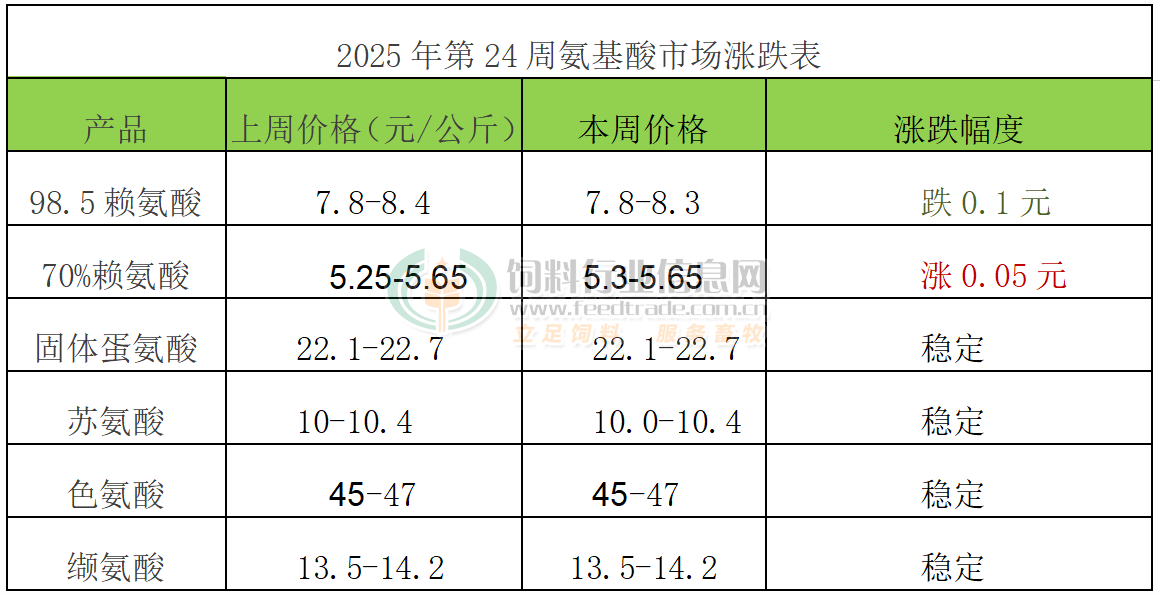 2025年第24周添加劑漲跌榜