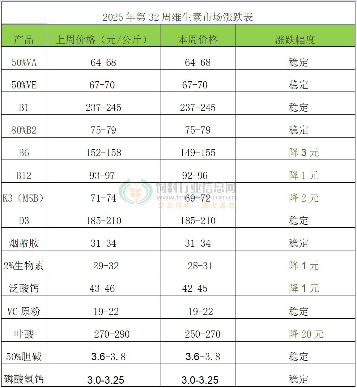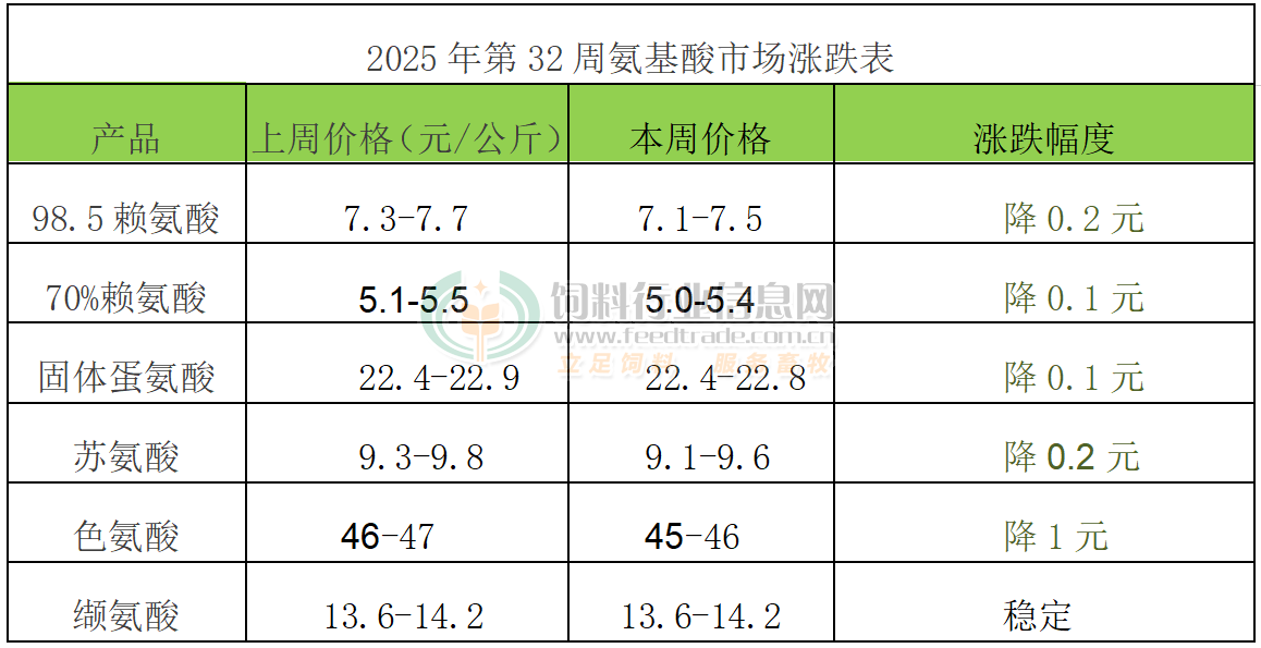 2025年第32周添加劑漲跌榜