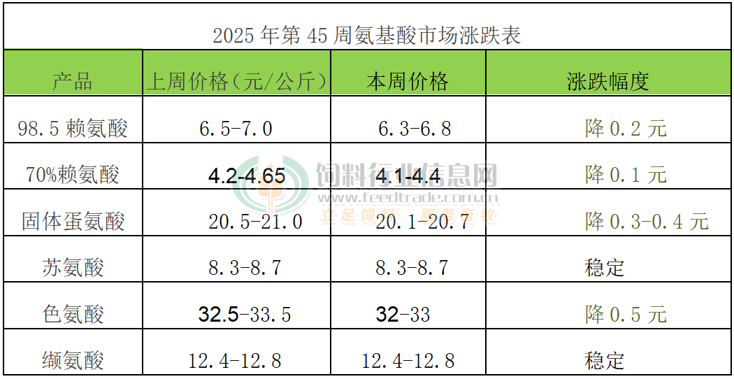 2025年第45周添加劑漲跌榜