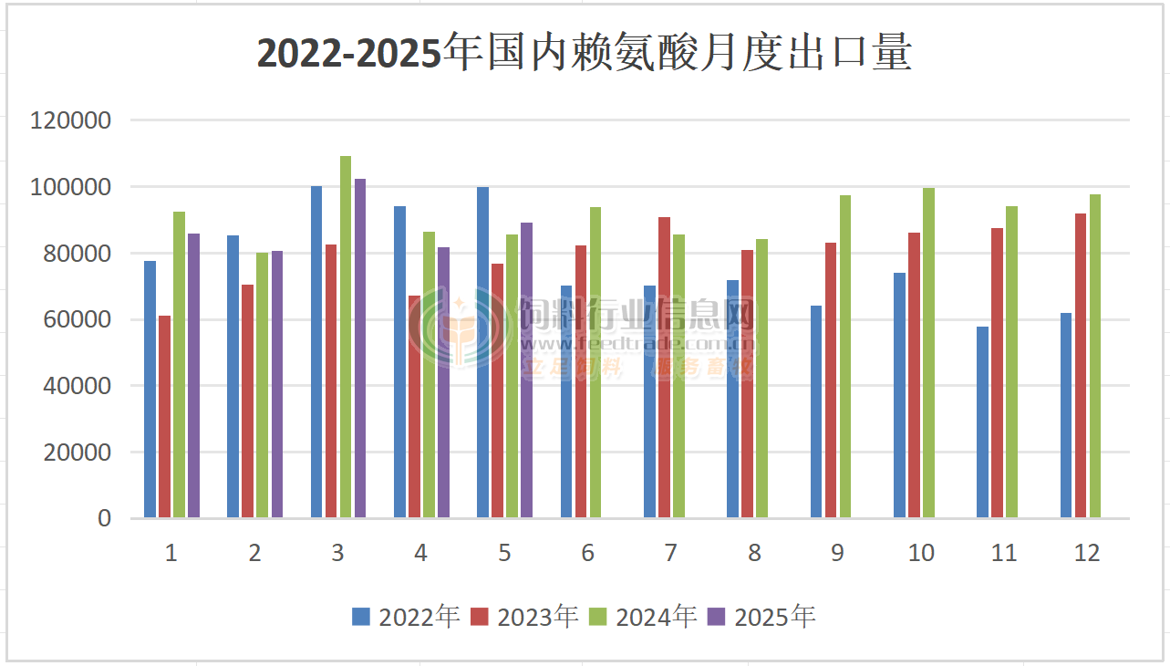 2025年5月我國賴氨酸、蛋氨酸出口量同比增長
