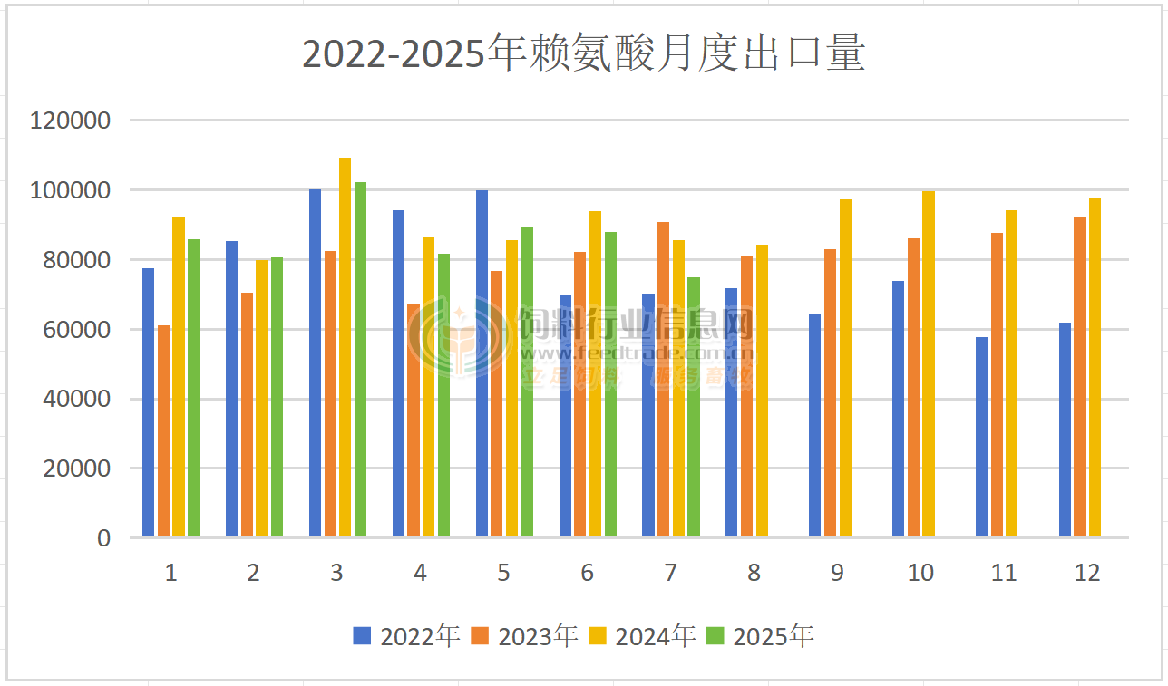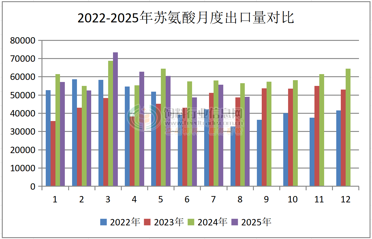 2025年8月我國賴氨酸、蘇氨酸出口量同比下降