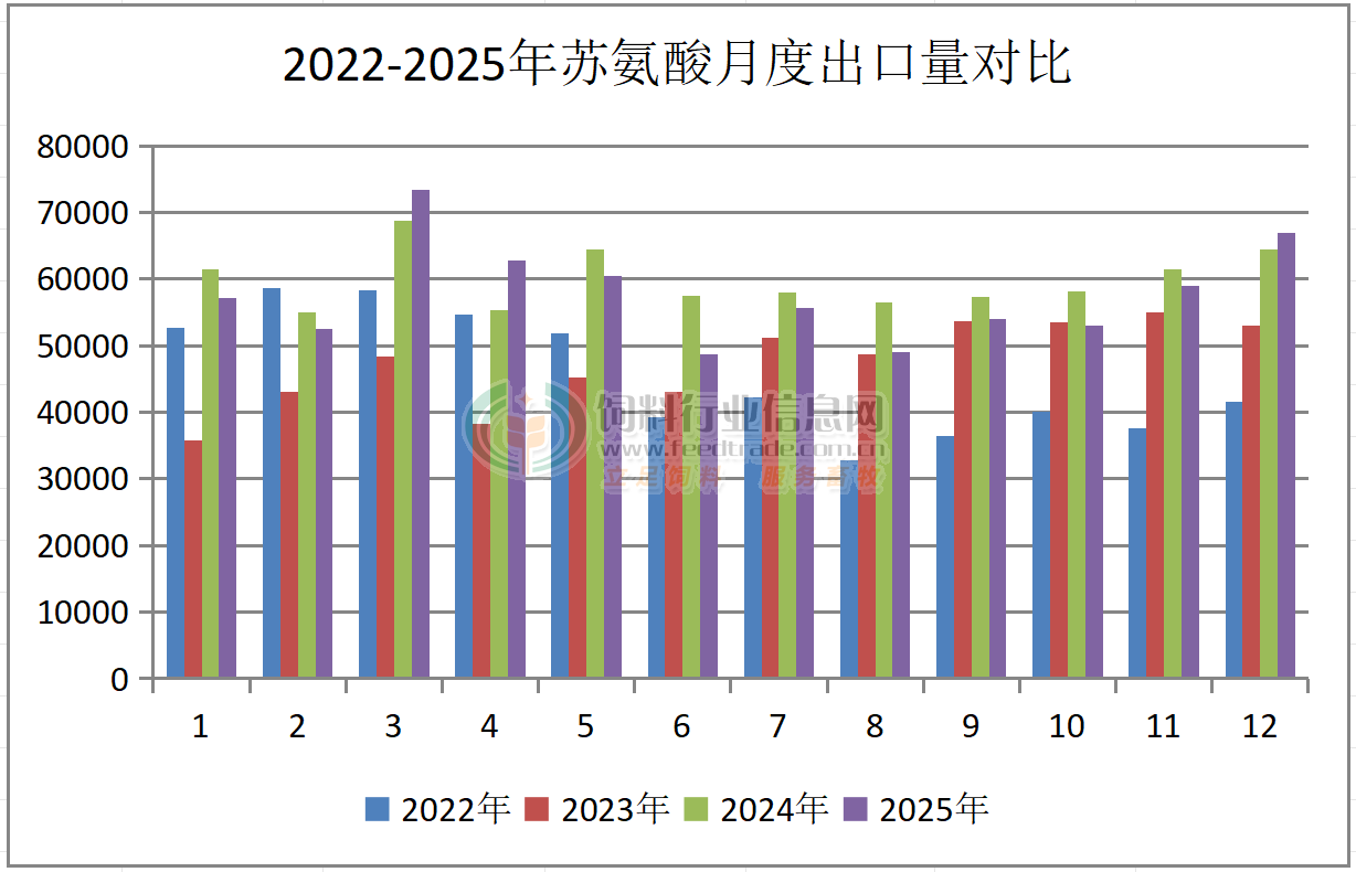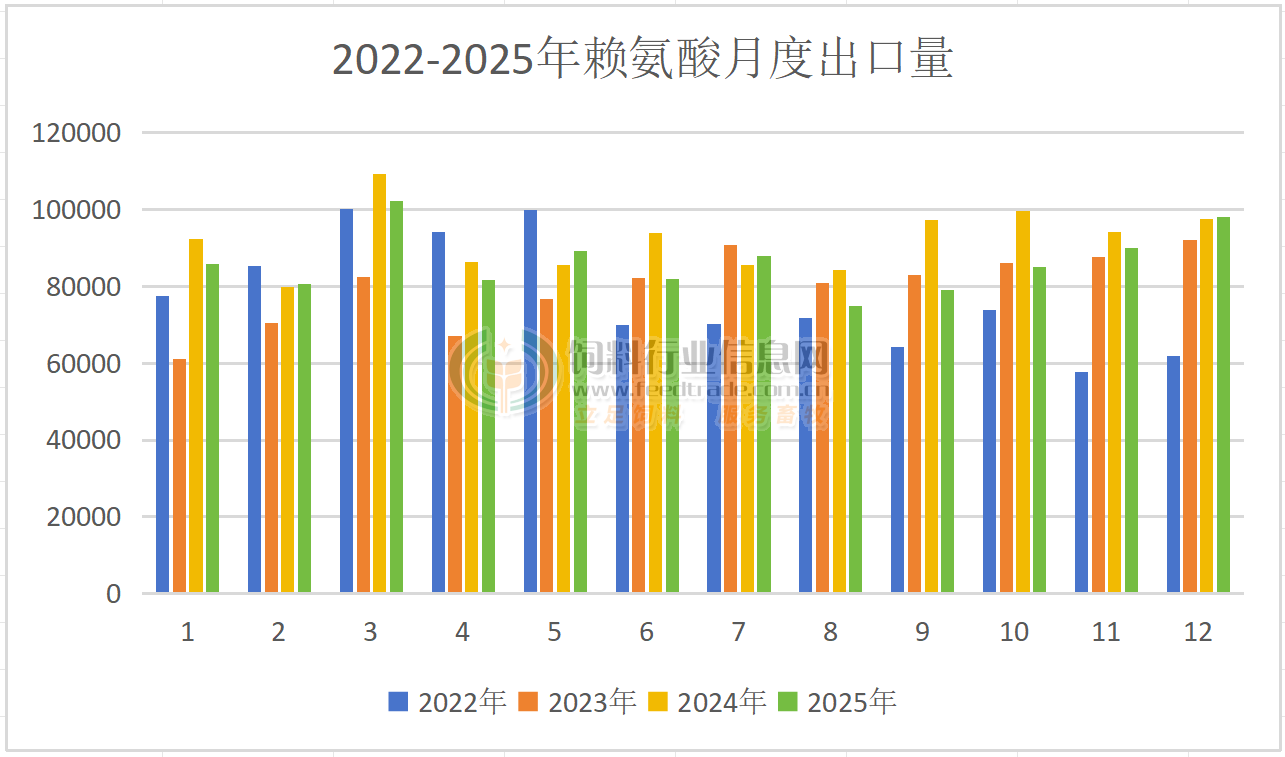 2025年12月我國賴氨酸、蘇氨酸出口量繼續增長