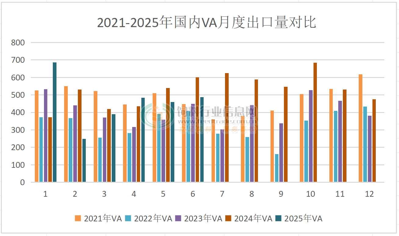 2025年6月國內VA出口量同比下降,VC出口量同比增長