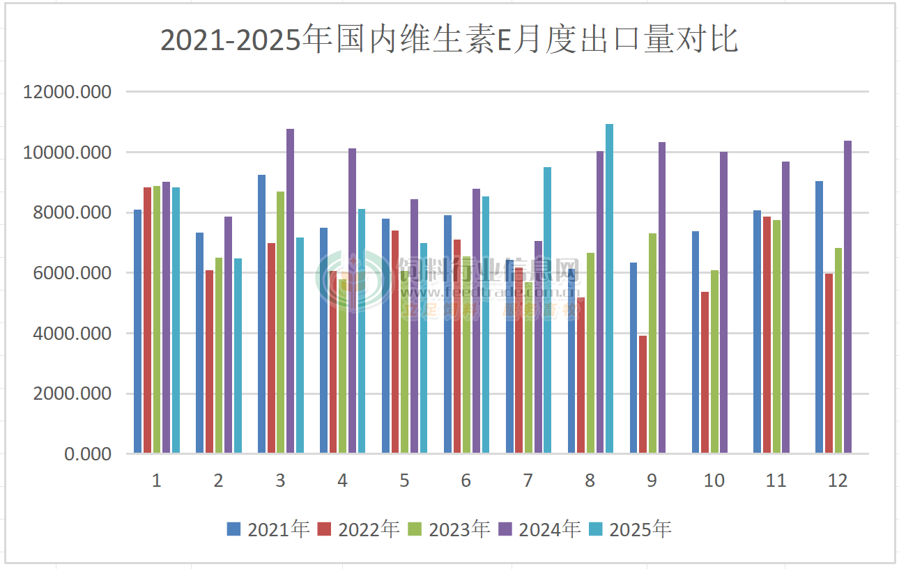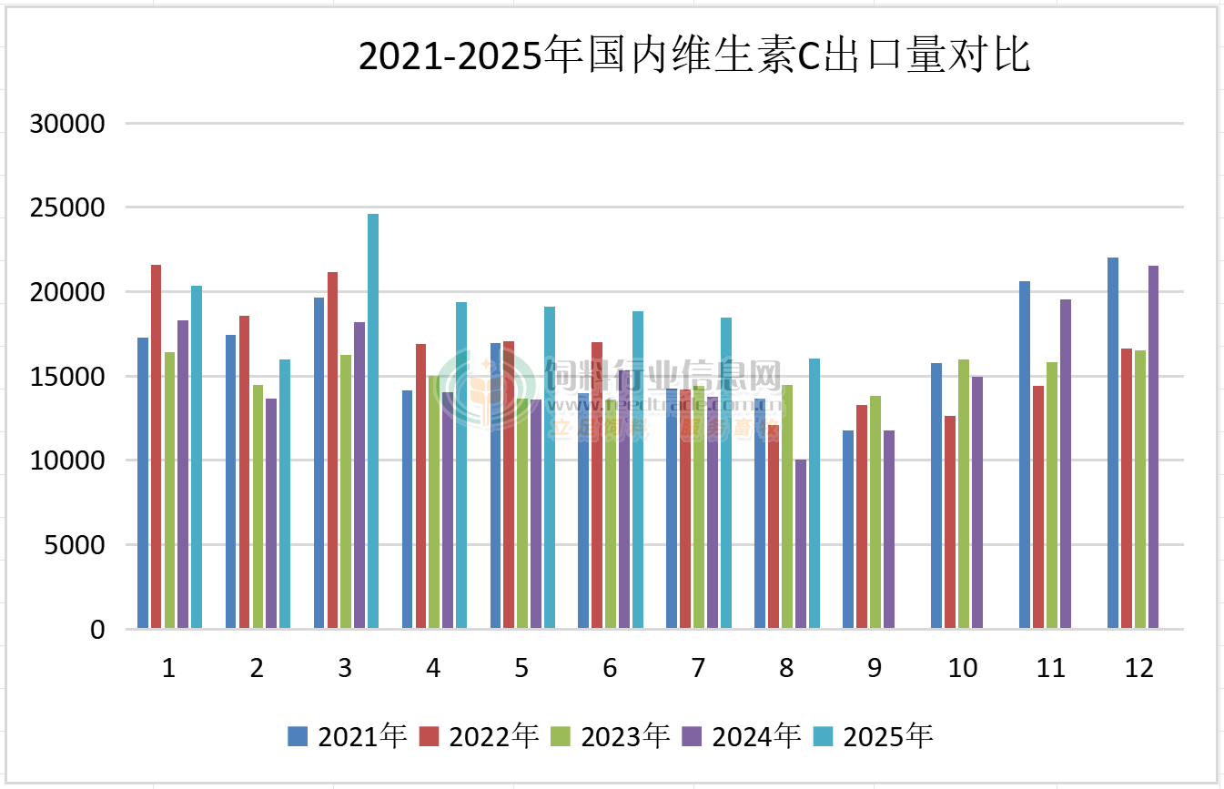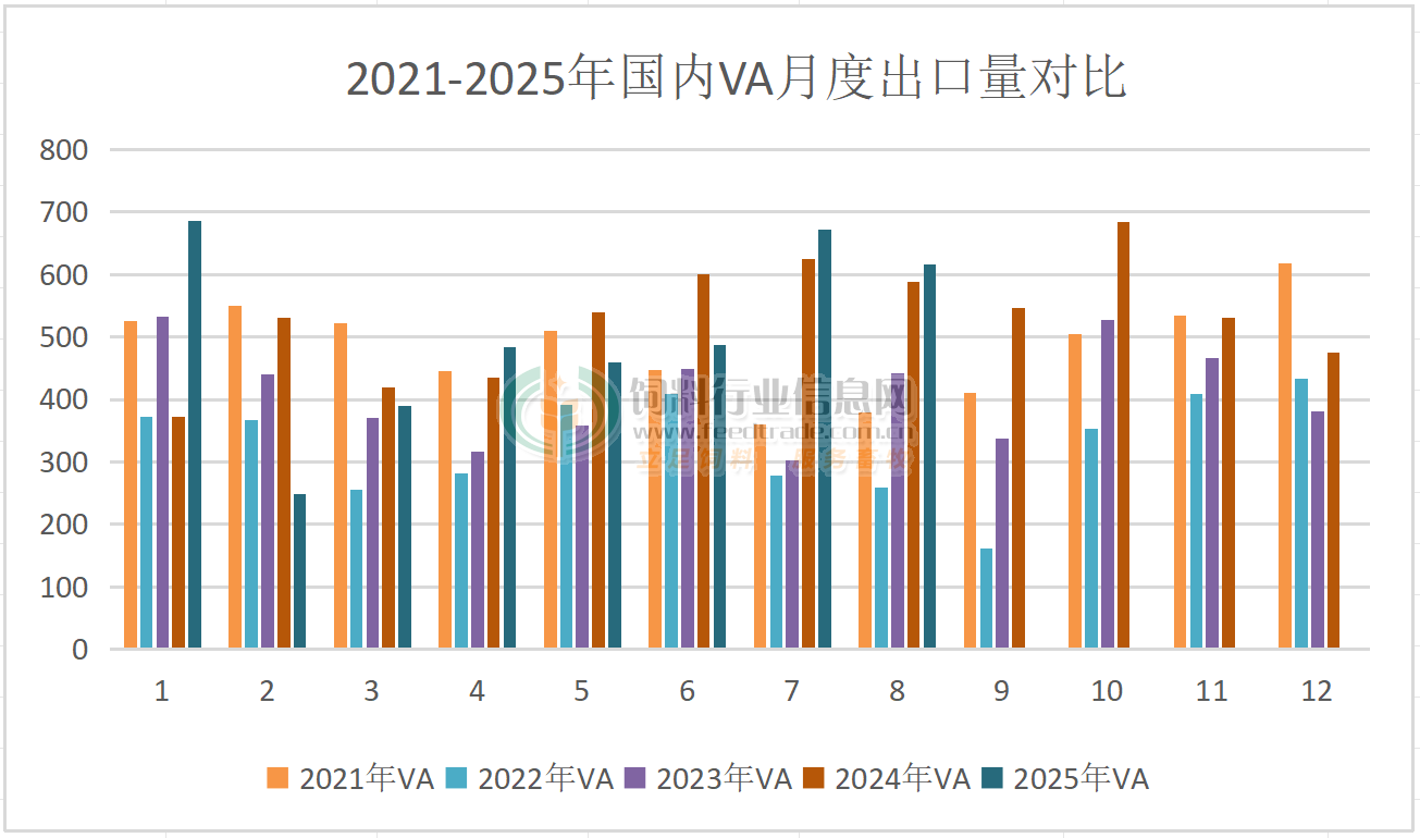 2025年8月國內VA、VE、VC出口量同比增長