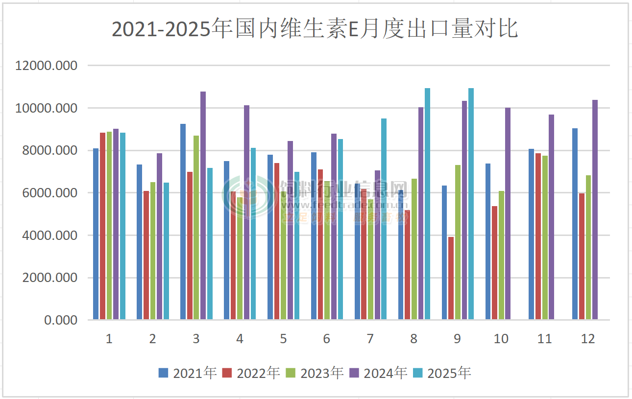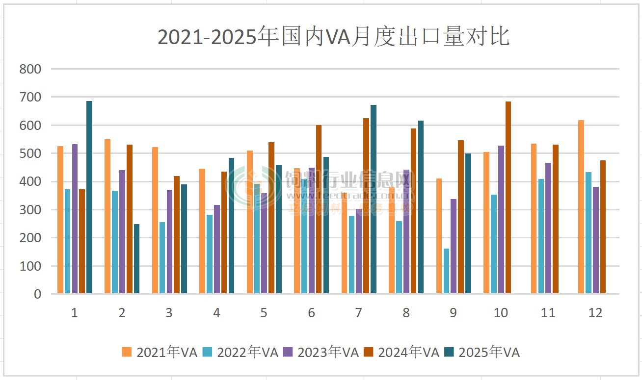 2025年9月國內VA出口量同比下降,VE、VC出口量同比增長