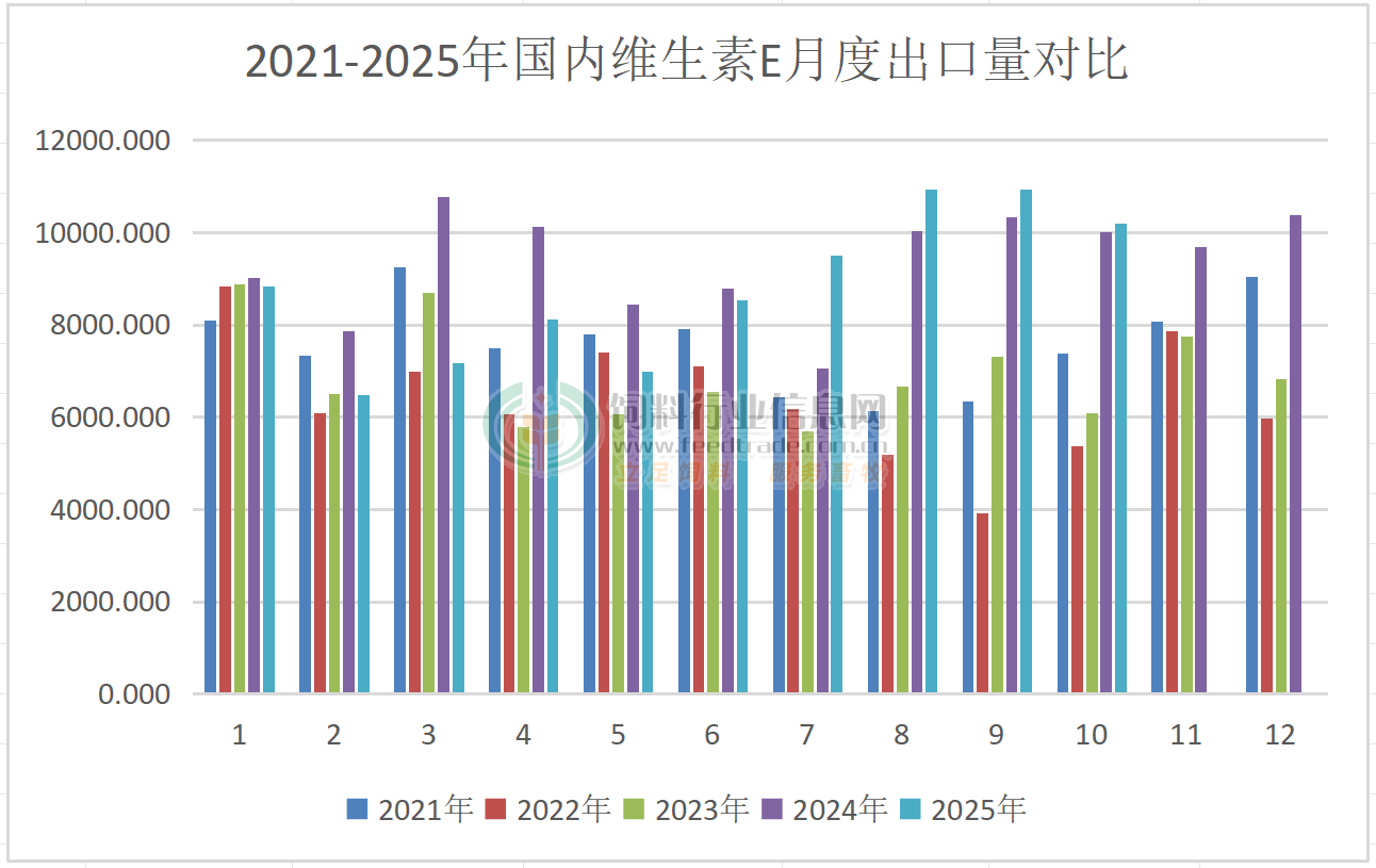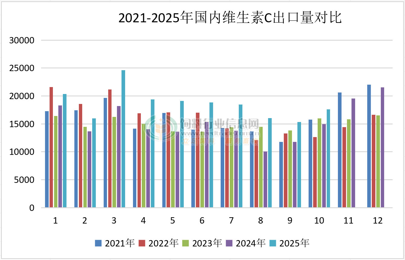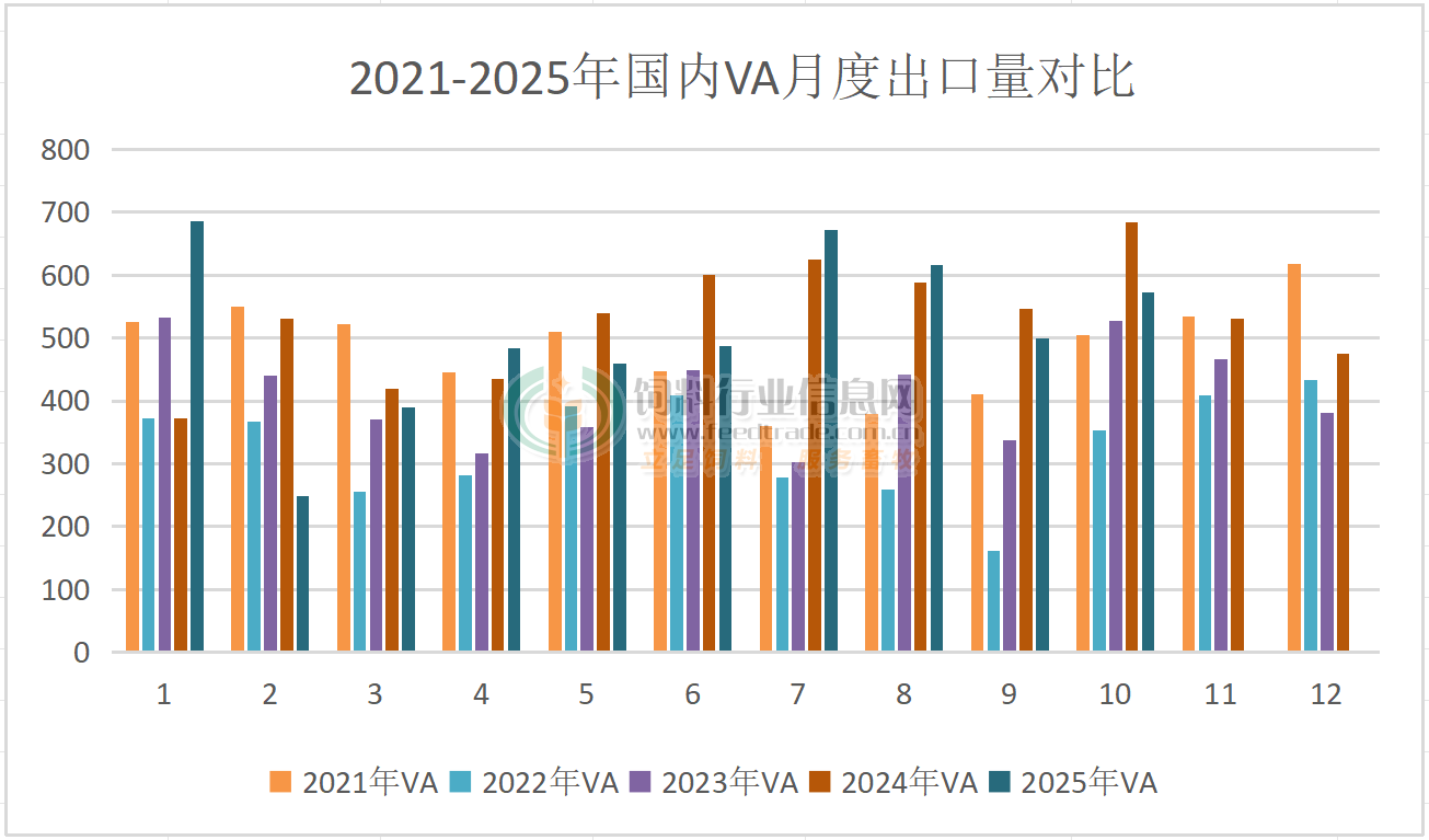 2025年10月國內VA出口量同比下降,VE、VC出口量同比增長