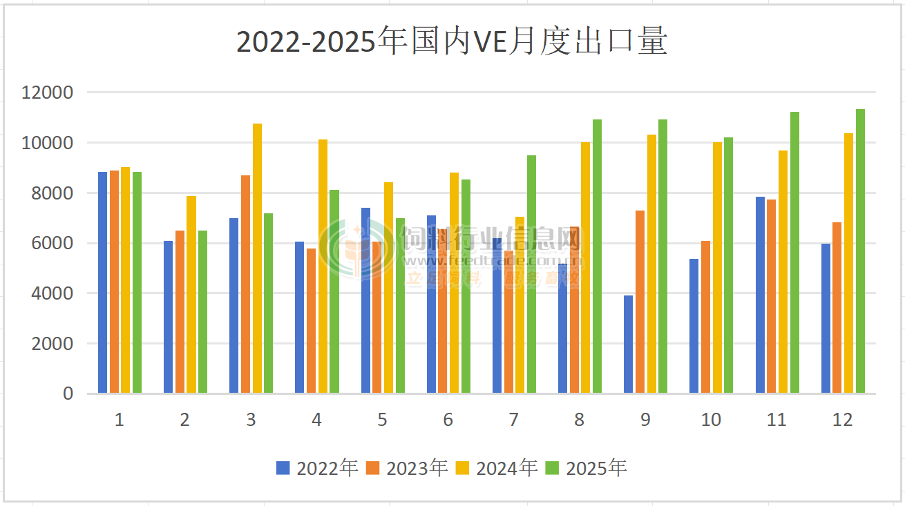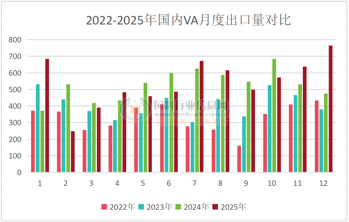 2025年12月國內VA、VE出口量同比環比大增