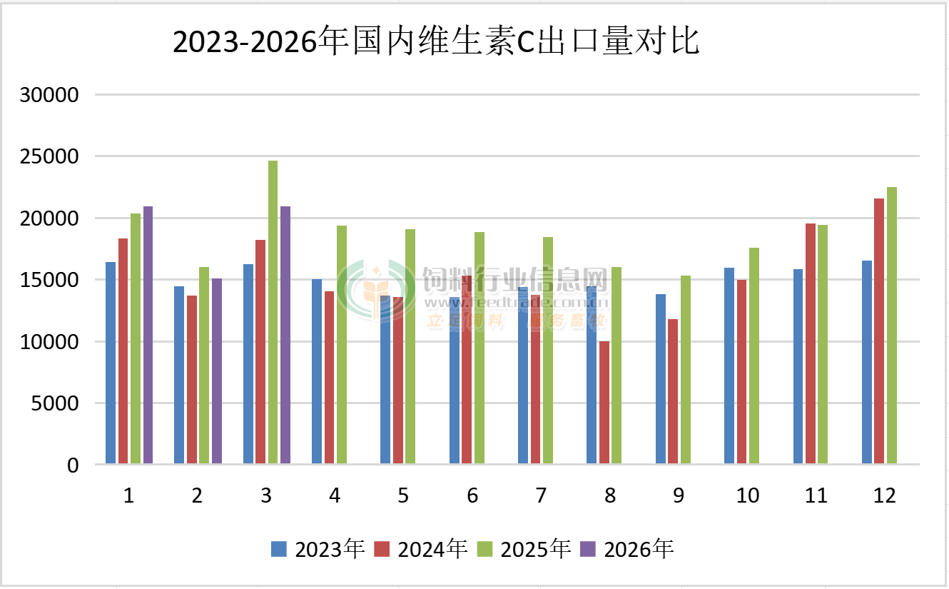 海關數據統計,2026年1月我國維生素c出口量2.094萬噸,2月我國維生素c出口量1.506萬噸,3月我國維生素c出口量2.093萬噸,同比降14.9%。2026年1-3月我國維生素c出口量5.694萬噸,同比降6.64%。我國VC產品主要出口國有美國、德國、荷蘭、日本、巴西、印度尼西亞等。