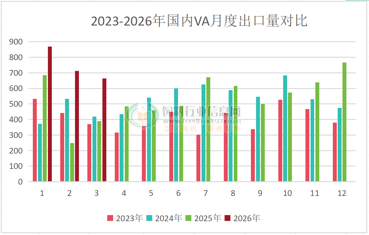 據海關數據統計,2026年1月我國維生素A出口量867.61噸,2月我國維生素A出口量711.687噸,3月我國維生素A出口量663.675噸,同比增69.9%。2026年1-3月我國維生素A出口量共2243噸,同比增69.3%。2026年1-3月國內VA產品進口量為224.77噸,同比略增。國內維生素A對外主要出口地區有德國、美國、越南、巴西、南非、荷蘭等。