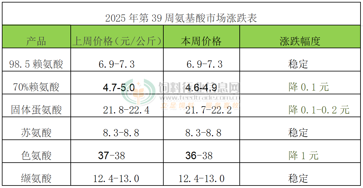 2025年第39周氨基酸市場動態
