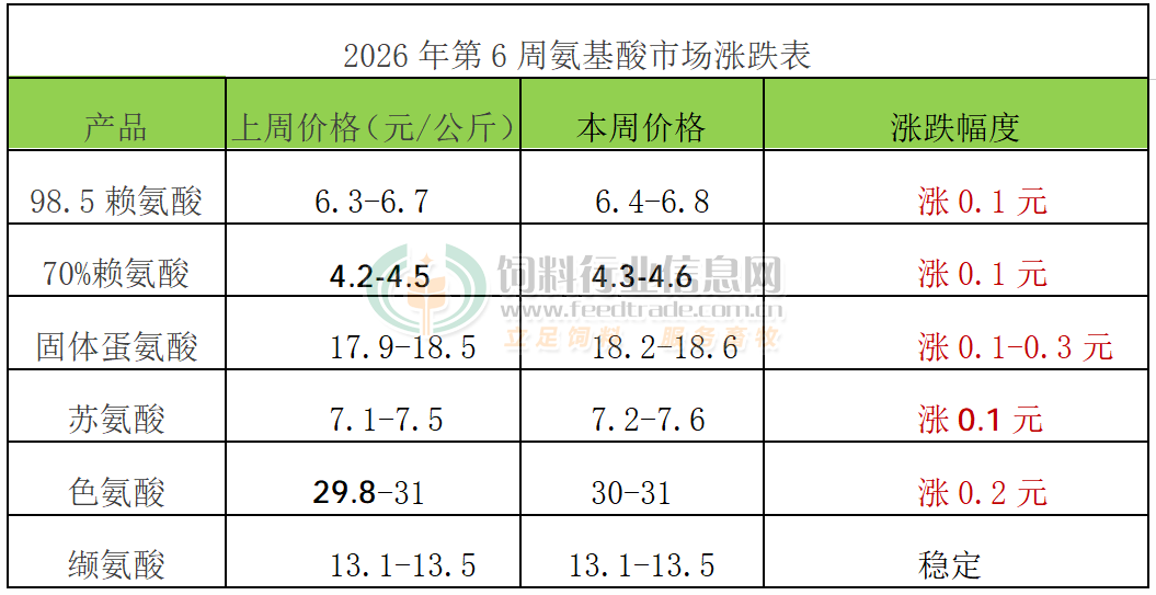2026年第6周氨基酸市場動態