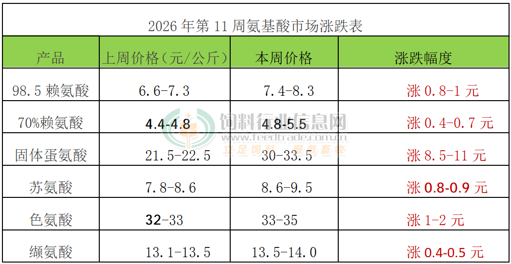 2026年第11周氨基酸市場跳漲