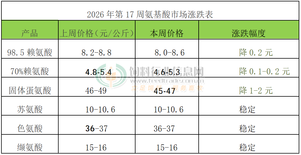 2026年第17周氨基酸市場動態