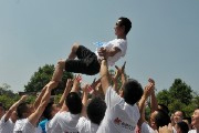 2012年7月6日早上8點零8分,圣迪樂村廣場上一面鮮艷的五星紅旗伴著金色的陽光在雄壯的國歌聲中冉冉升起,巨型拱門和升空彩幅將整個圣迪樂廣場裝扮得喜慶而熱烈,鐵騎力士20周年慶典升旗儀式在這里隆重舉行。