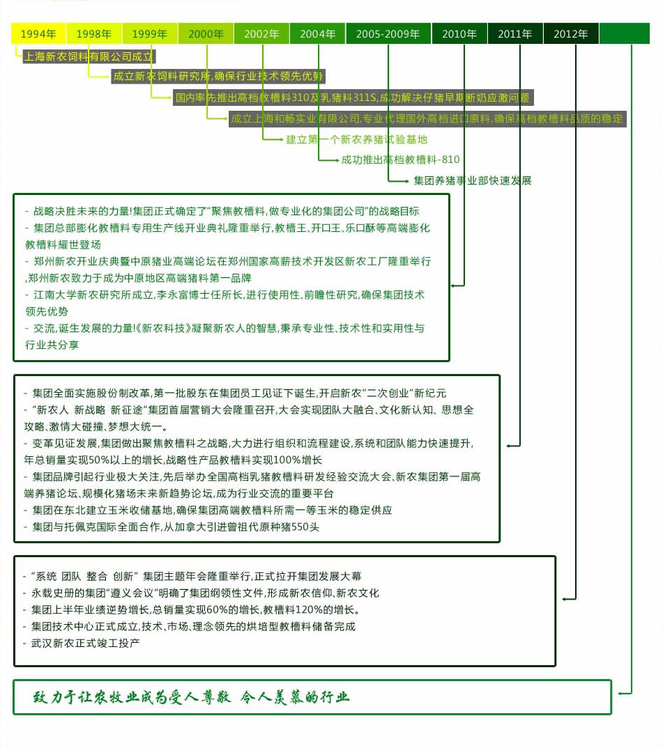 中國規?;i場教槽料第一品牌。新農將在以飼料為主業的前提下,大力發展種豬及生豬養殖和高端品牌肉事業,拓展優質飼料原料貿易及新型飼料添加劑的研發及生產,構建和完善規?;i場全方位服務體系,使新農產業鏈的各個環節在為客戶創造價值的過程中快速發展,實現“員工、客戶、公司”合作共贏。