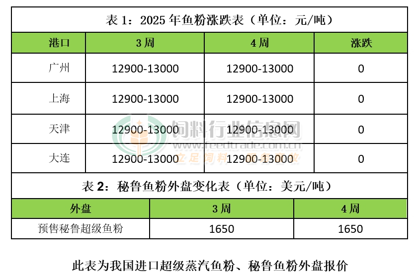 雖然已經有秘魯本季魚粉到貨,但量少,我國港口魚粉庫存依舊有所減少。據飼料行業信息網了解得知,截止到2025年1月21日,港口庫存為22.42萬噸,較上周同期下降了0.68萬噸,其中黃埔13.69萬噸,上海4.34萬噸,天津0.05萬噸,大連0.65萬噸,其他0.41萬噸。