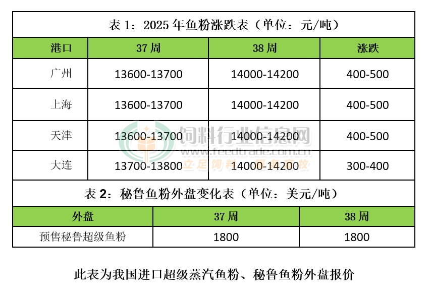 本周國內外魚粉市場強勢上漲。外盤方面,秘魯當地魚粉廠商存在挺價意愿,價格堅挺令我國魚粉采購意愿減弱,當地市場成交減少。其中新季秘魯超級蒸汽魚粉預售參考價格為CNF1800美元/噸,實際成交議價。
