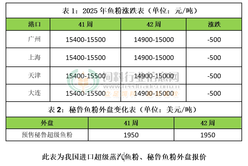 雖然魚粉市場成交不佳,但是魚粉到貨少量,港口魚粉庫存繼續緩慢下降為主。據飼料行業信息網了解得知,截止到2025年10月14日,港口庫存為24.2萬噸,較上周同期下降了1.06萬噸,其中黃埔12.59萬噸,上海5.95萬噸,天津0.11萬噸,大連0.6萬噸,其他0.41萬噸。
