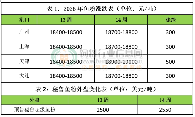 魚粉外盤方面,周內秘魯魚粉廠商繼續挺價,主要由于對于厄爾尼諾天氣以及開爾文暖波等氣候影響的擔憂,新季秘魯超級蒸汽魚粉預售參考價格在CNF2550美元/噸,上漲了50美元/噸。同時,2026年中北部A季鳀魚捕撈配額公布為1914049噸,自當地時間4月9日零時正式開始,若配額完成提前結束。