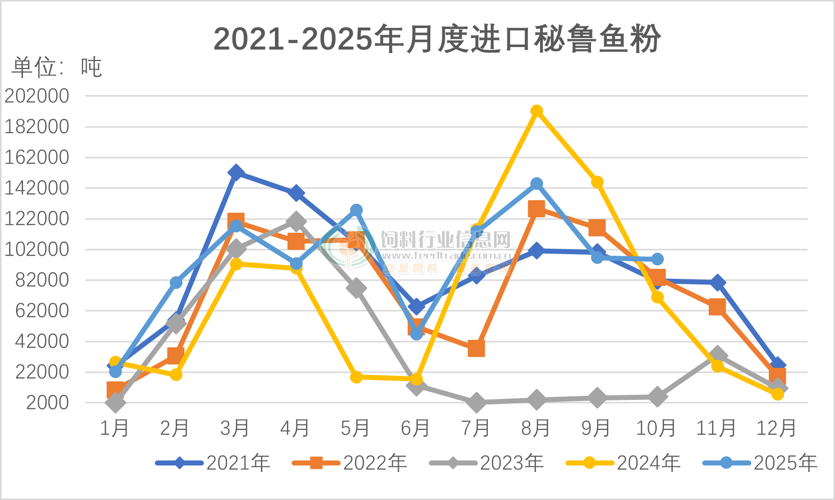 海關數據顯示,2025年10月,我國進口秘魯魚粉占比為55%,其中10月我國進口秘魯魚粉數量為95636噸,同比增加35%,環比減少1%。