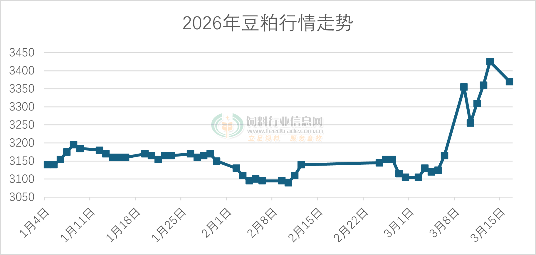 豆粕現貨均價3370元/噸,跌了55元/噸。其中江蘇地區價格為3290-3340元/噸,跌了20-40元/噸。