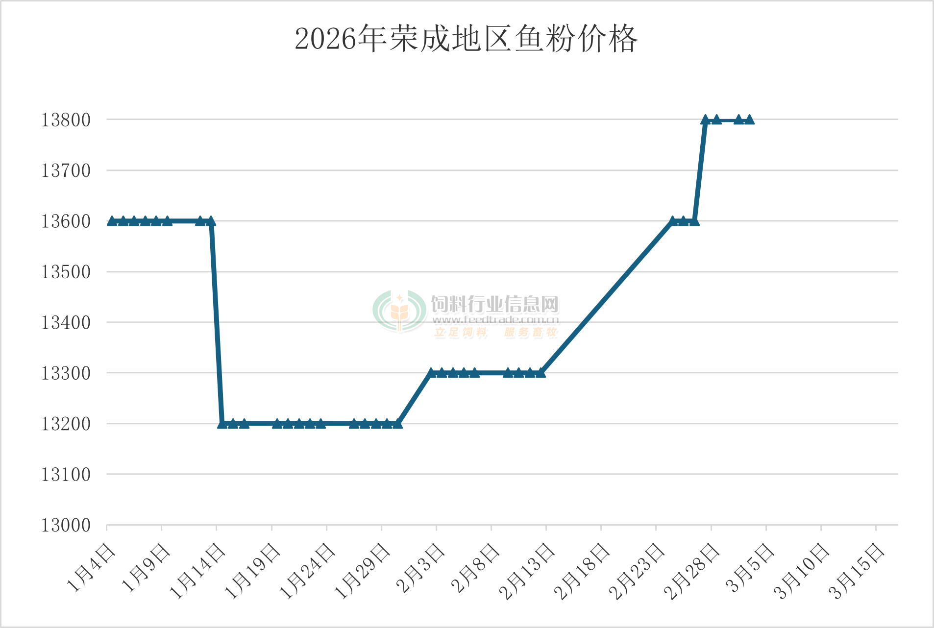 國產魚粉上漲,其中山東榮成地區63%蛋白TVN150的國產魚粉參考報價在14800元/噸。