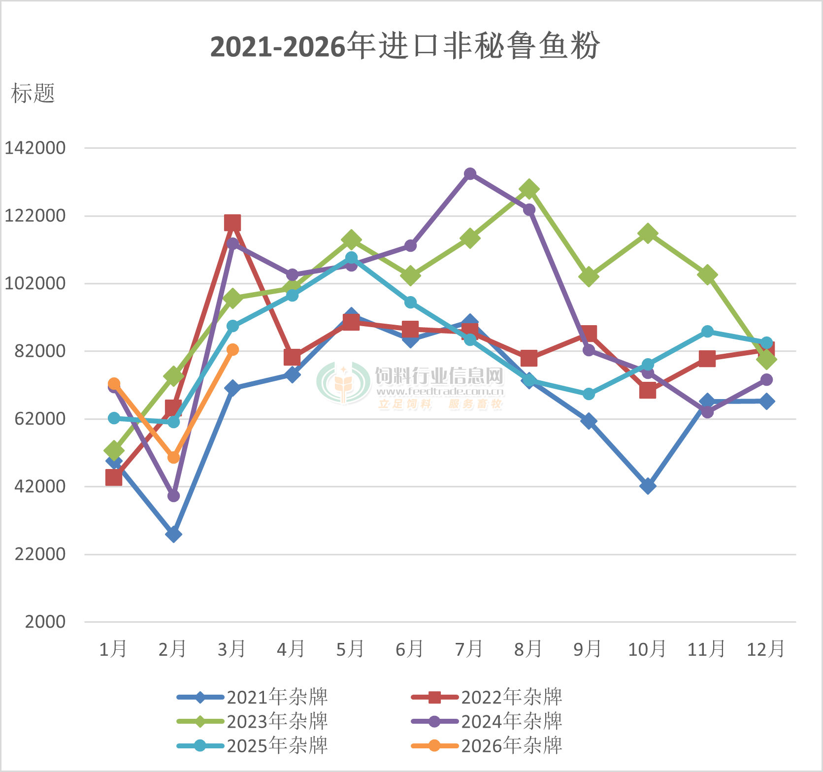 2026年2月份,我國進口魚粉環比、同比均下降。但3月份進口魚粉環比上升明顯。據海關數據顯示,3月我國共進口魚粉數量為191576噸,環比增加103%,同比減少7%;其中1-3月份我國共進口魚粉數為383008噸,同比減少11%。