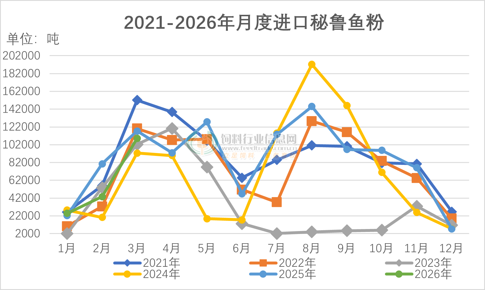 同時2026年1-3月,我國進口秘魯魚粉占比為46%,其中1-3月我國共進口秘魯魚粉為177520噸,同比減少19%。