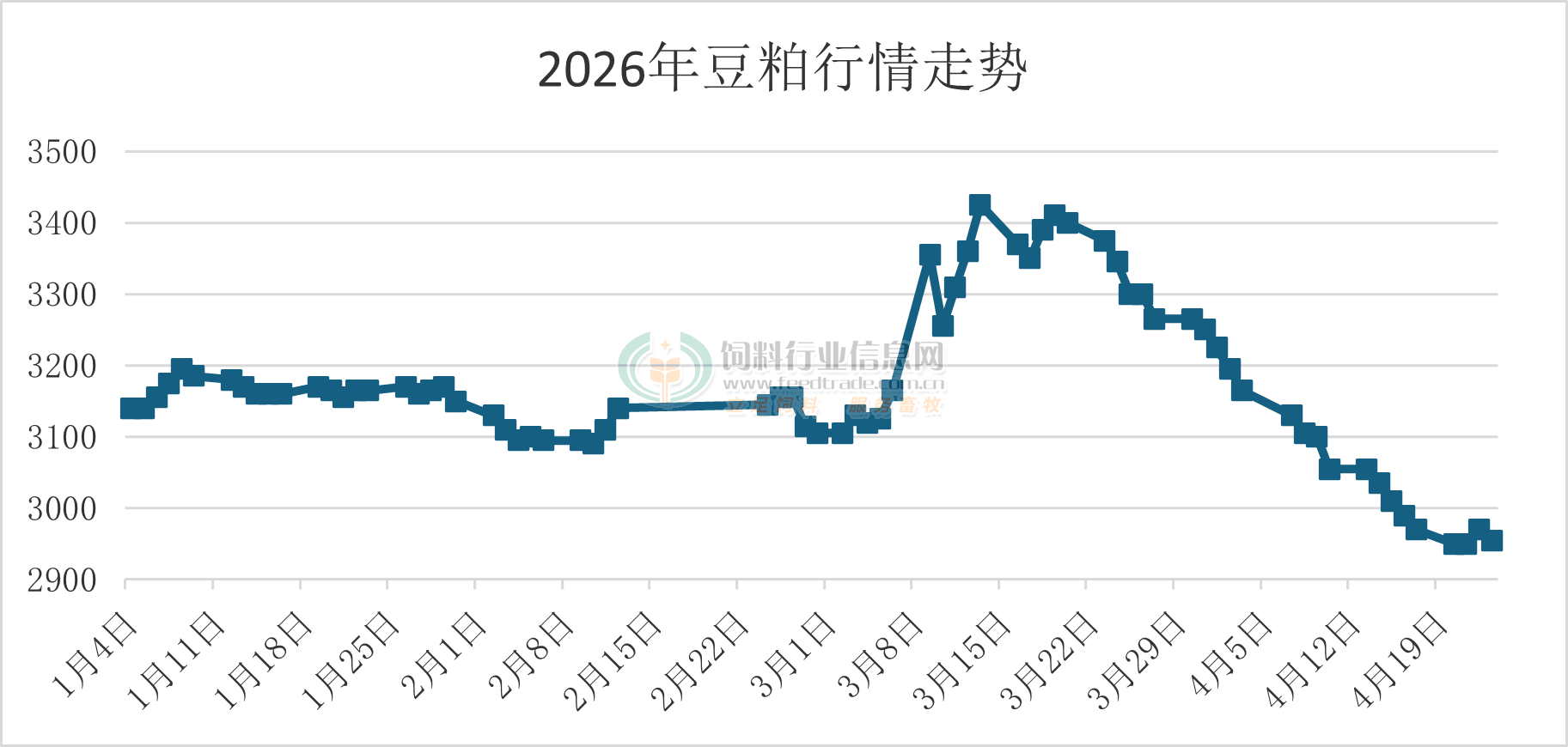 期貨方面,4月23日,大連商品交易所(DCE)豆粕主力合約M2609合約,開盤3020元,收盤2994元,跌19元。