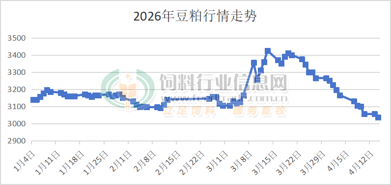 現貨豆粕均價為3035元,跌20元/噸。其中江蘇地區價格為2950-3020元/噸,跌20-30元/噸。