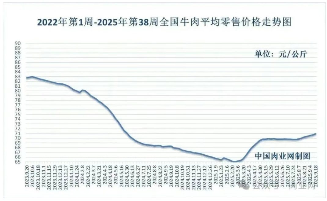 2025年10月10日全國牛肉均價走勢分析