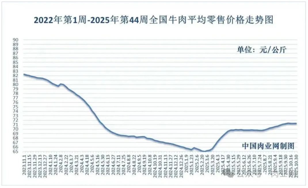 2025年11月20日全國牛肉均價走勢分析