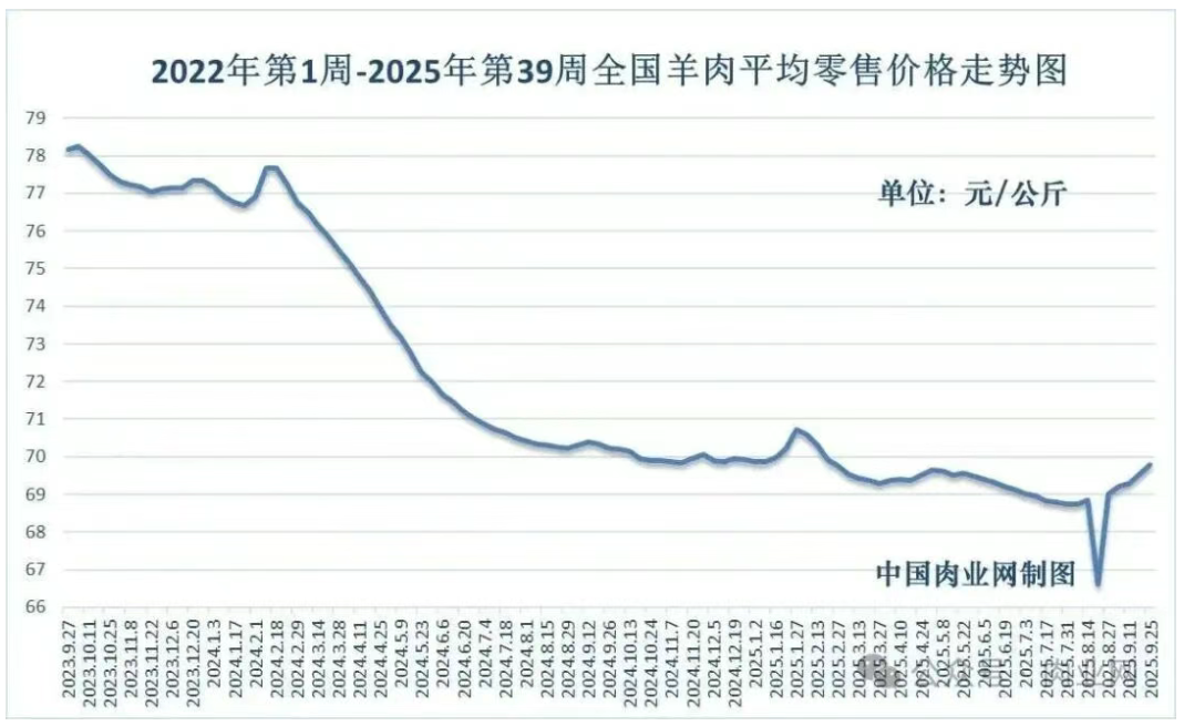 2025年10月15日全國羊肉均價走勢分析