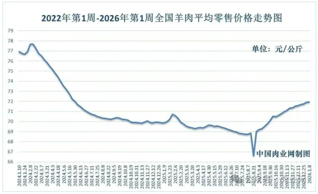 2026年1月28日全國羊肉均價走勢分析