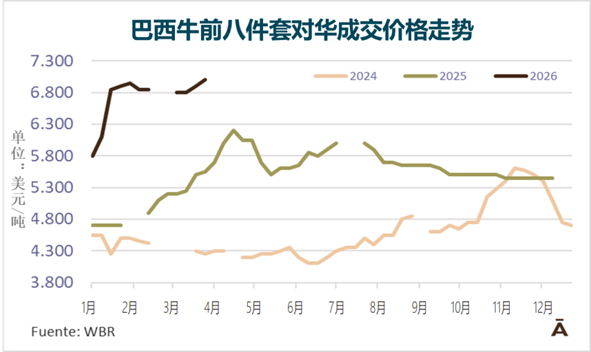 巴西方面,一位貿易商報告稱牛前八件套成交價為7000美元/噸,但亦有數家工廠對新交易報出更高價格。巴西牛后件套的參考價中樞在7600至7800美元/噸。
