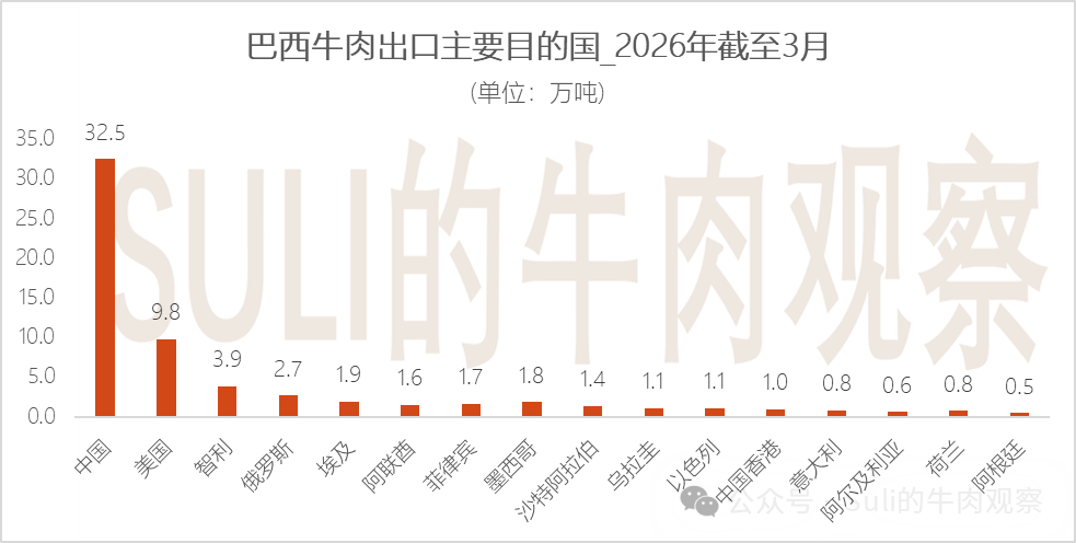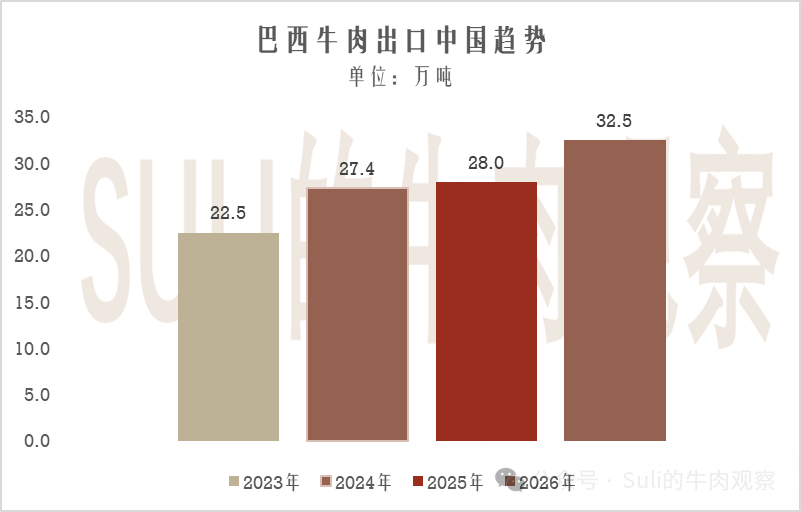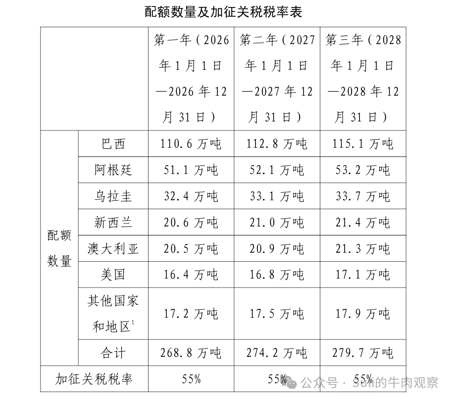 2026年,中國給到巴西的牛肉配額總共是110.6萬噸(具體可以查看商務部"對進口牛肉實施保障措施的裁定")。