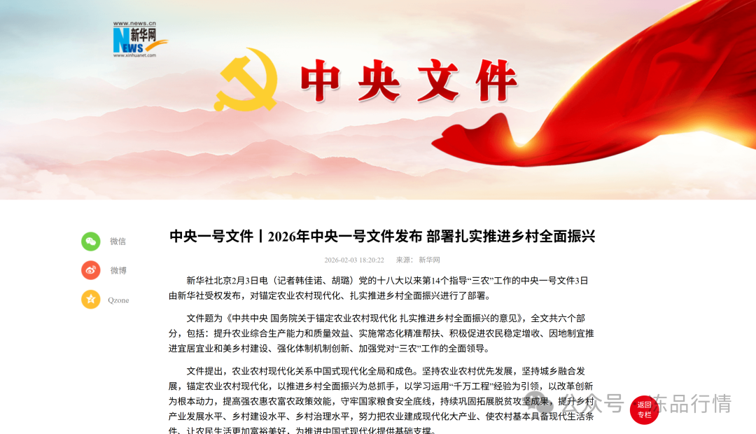 2026年2月3日,黨的十八大以來第14個指導“三農”工作的中央一號文件正式發布,恰逢“十五五”開局之年,這份重磅文件為農業農村現代化劃定清晰路徑。其中,鞏固肉牛產業紓困成果、強化食品安全監管、提升農業科技創新三大核心任務,疊加聯動進口牛肉調控政策,直接決定2026年肉牛產業走向、牛肉價格走勢,更關系千萬養殖戶、進口商、加工企業的全年盈利,干貨密集,行業人士必看!