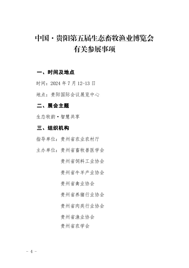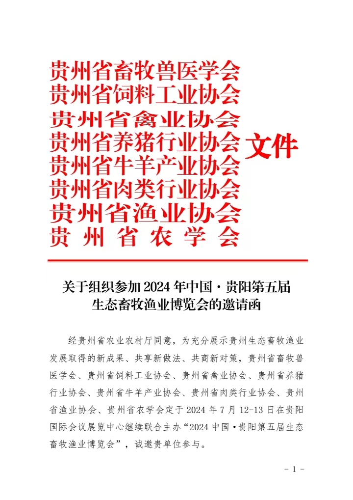 關于組織參加2024年中國貴陽第五屆 生態畜牧漁業博覽會的邀請函