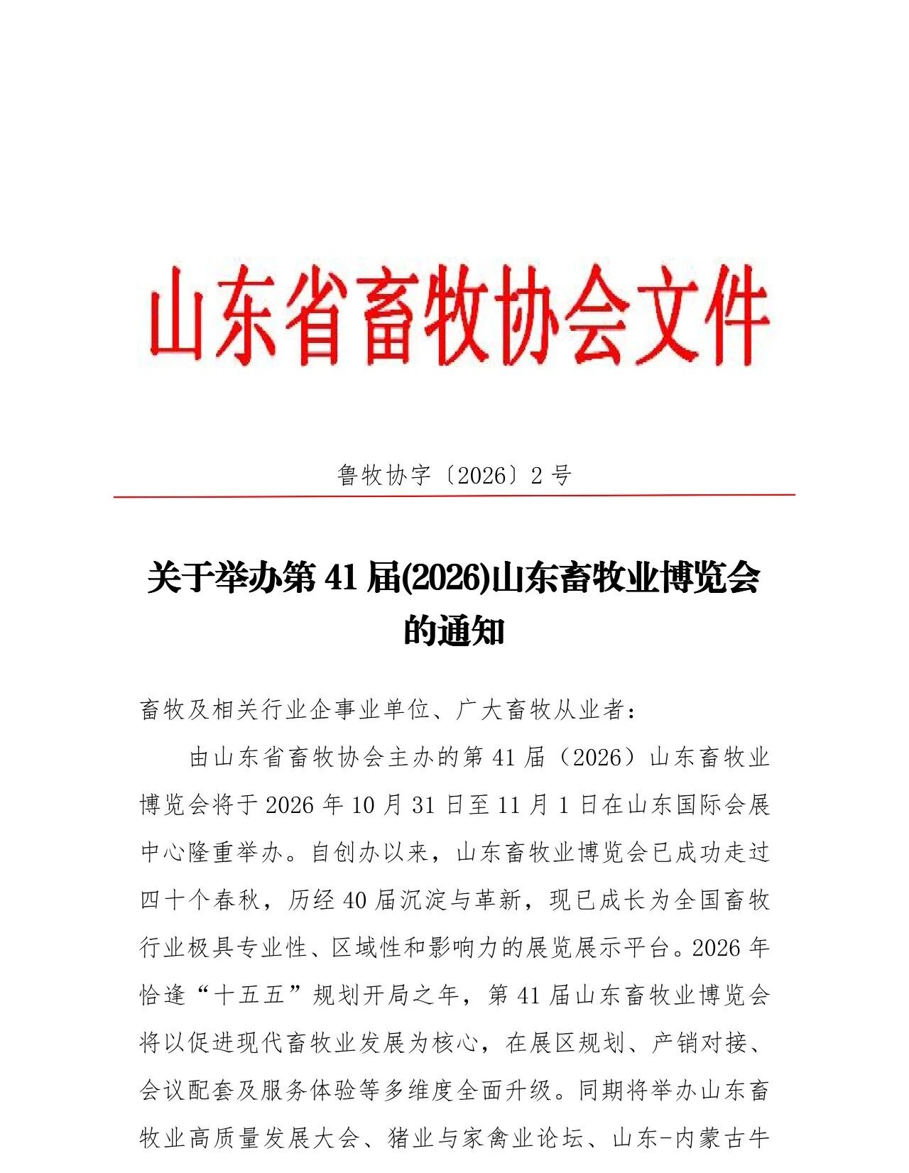 關于舉辦第41屆(2026)山東畜牧業博覽會的通知